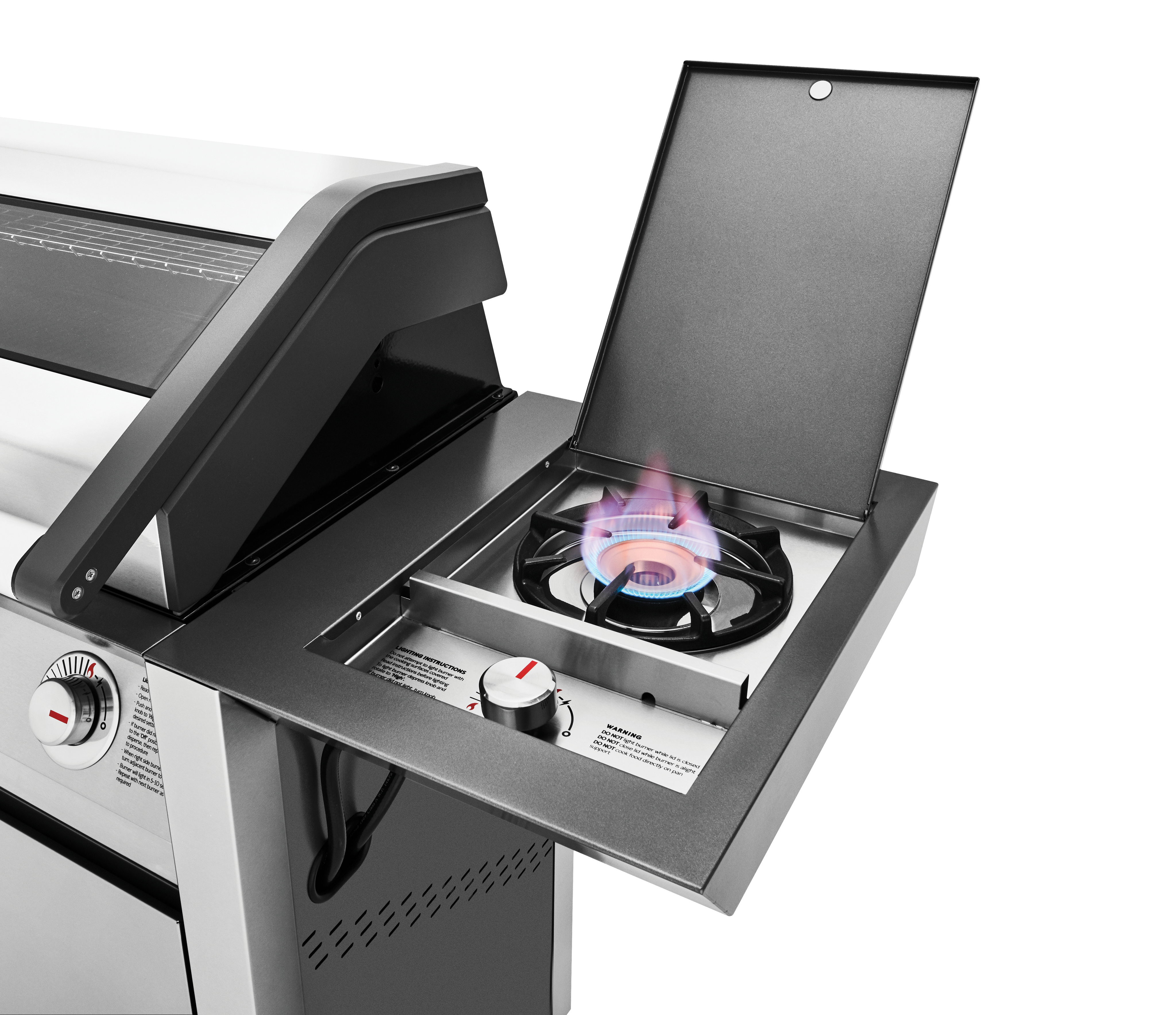 - Een terugklapkap die het mogelijk maakt dat de BBQ stevig tegen de muur staat.