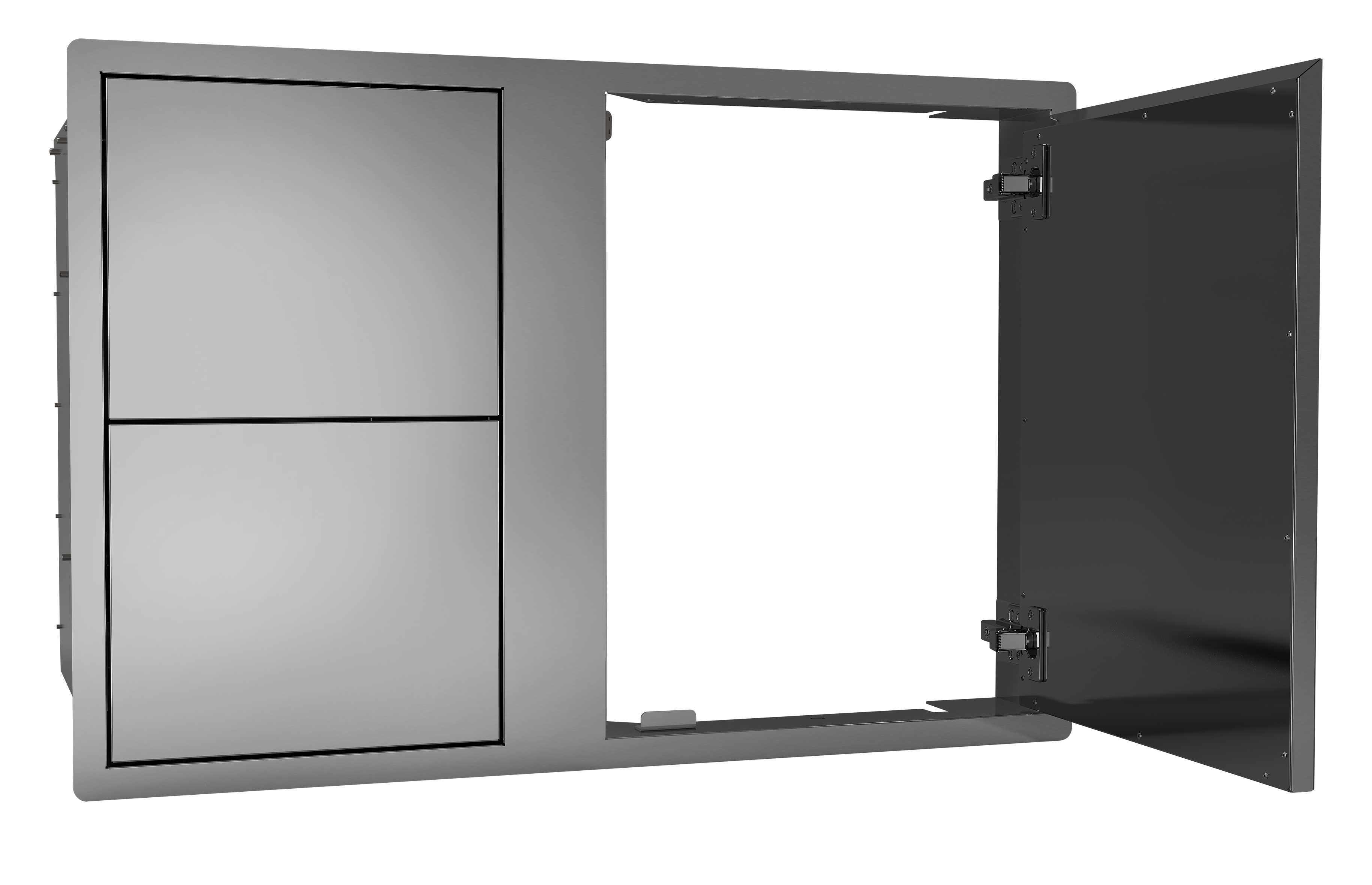 - Geïntegreerde scharnieren die binnenin zijn geplaatst voor een discrete uitstraling.